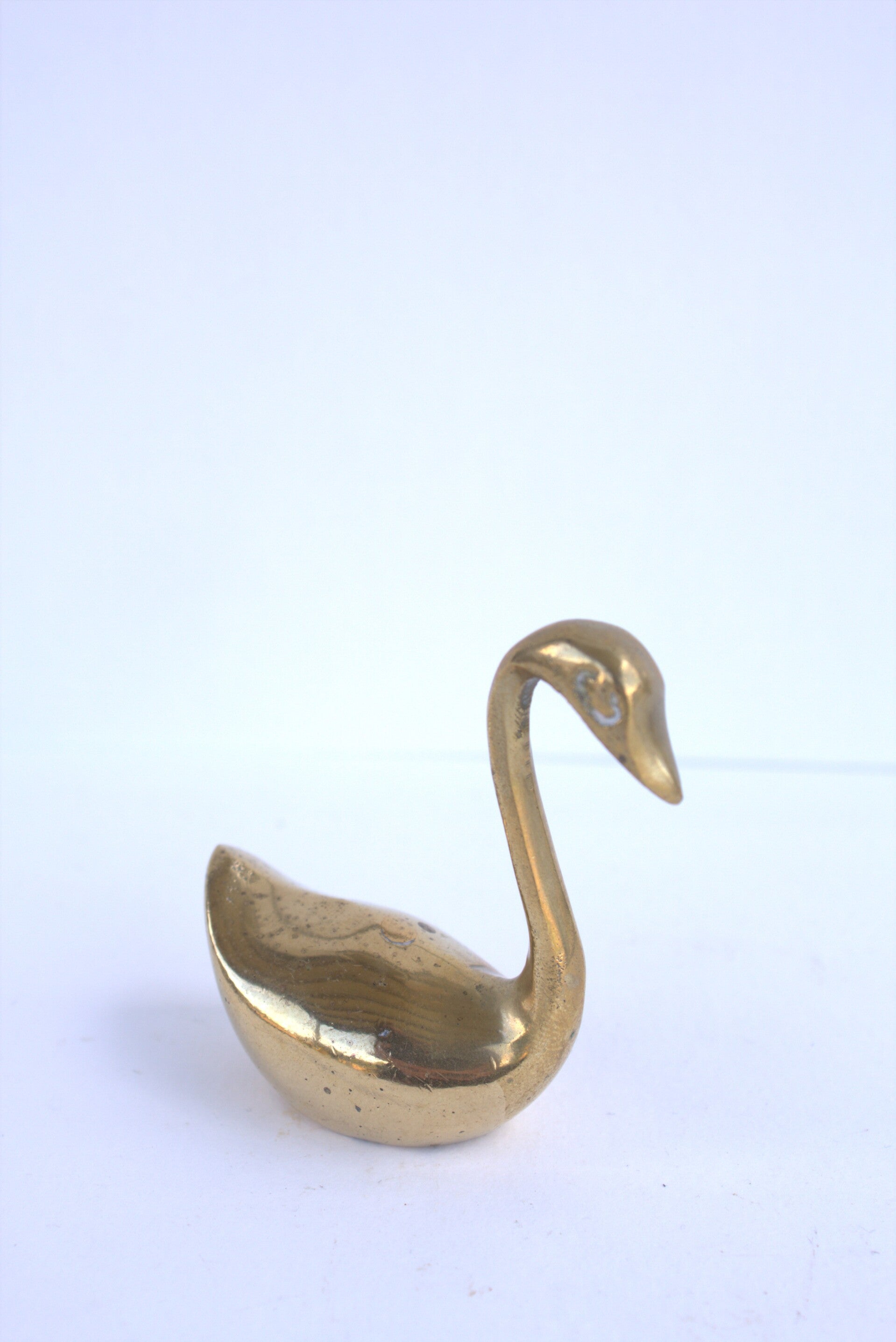 Vintage messing zwaan uit de jaren 70. Leuk om mee te decoreren. Hij is 5 cm lang 2.5 cm breed en 6 hoog, hij is niet massief.