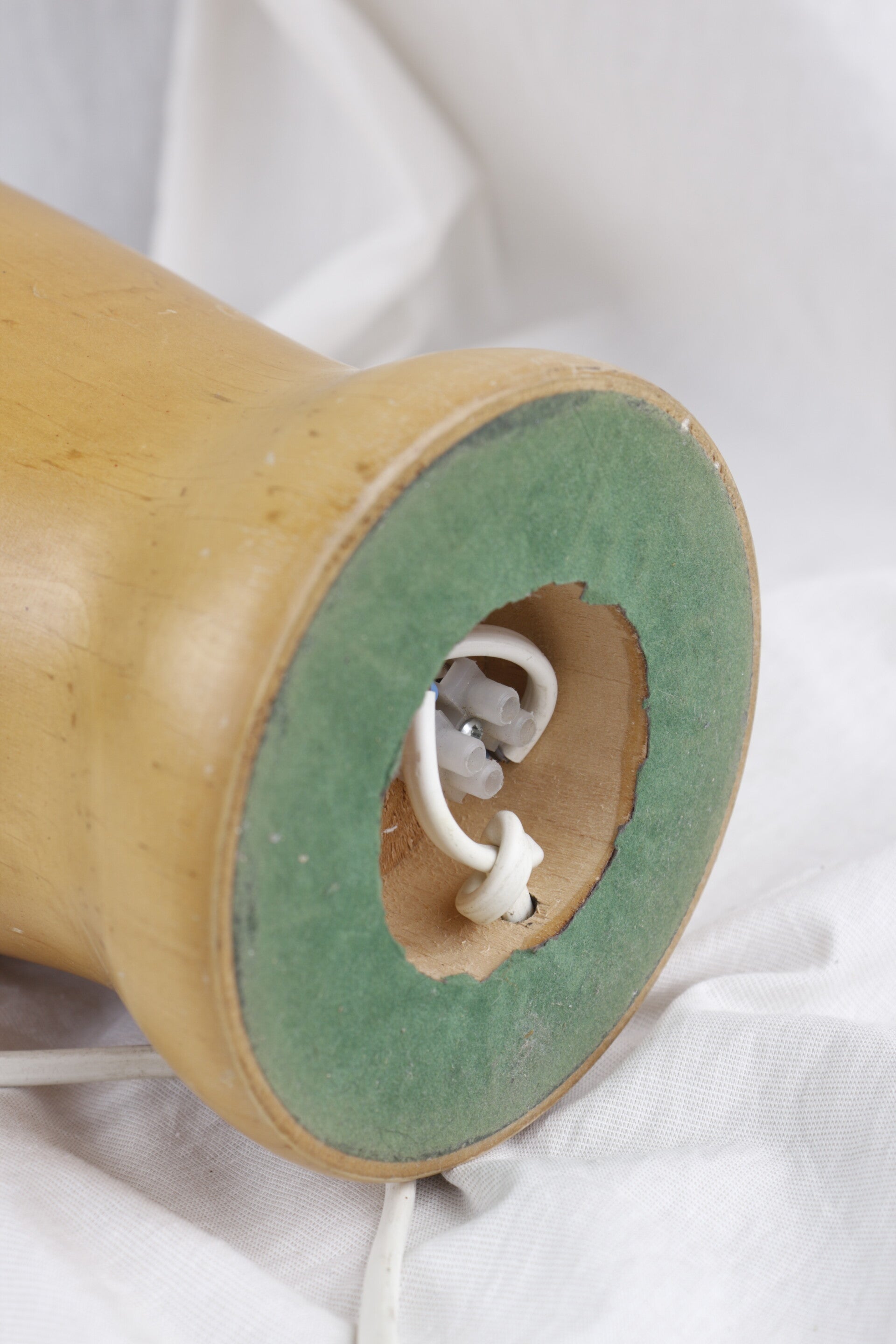 Mooie houten lampenvoet. Heeft een mooie elegante vorm. Alleen nog een leuke kap erop en hij is klaar.