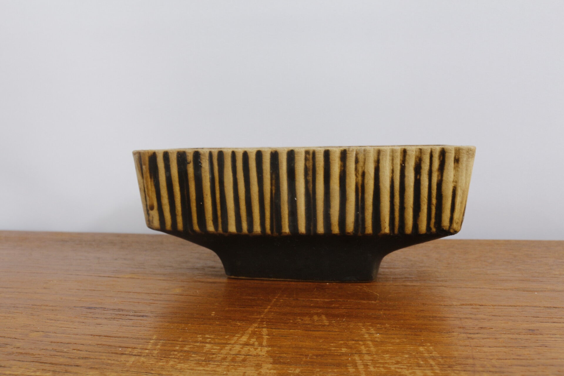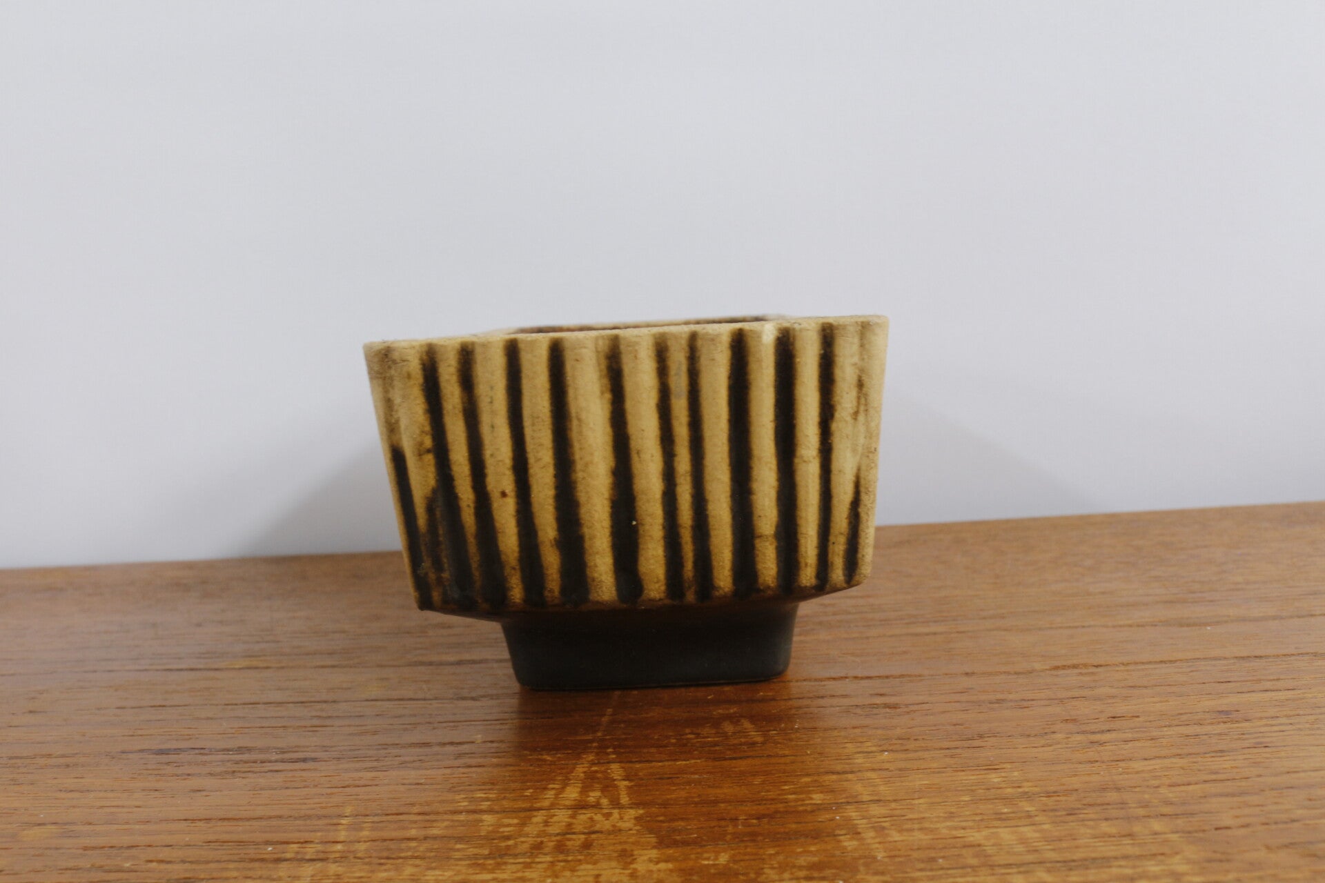 Mooie kleine vintage cactusbak op voet in berkenbast uitvoering. Deze uit de jaren 60 afkomstige bloempot is een echte eyecatcher in huis.