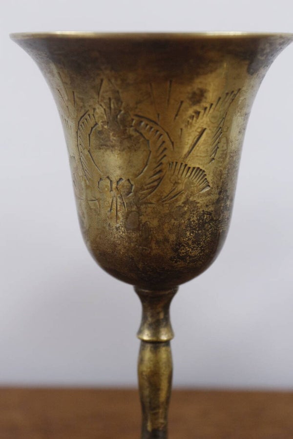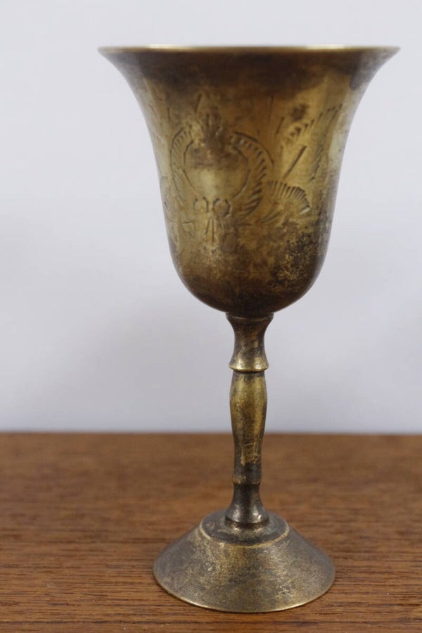 Deze kelken zijn supermooi, maar niet gepoetst. Ik hou ervan zoals ze nu zijn. Het lijkt dat ze van messing zijn en binnenin verzilverd.