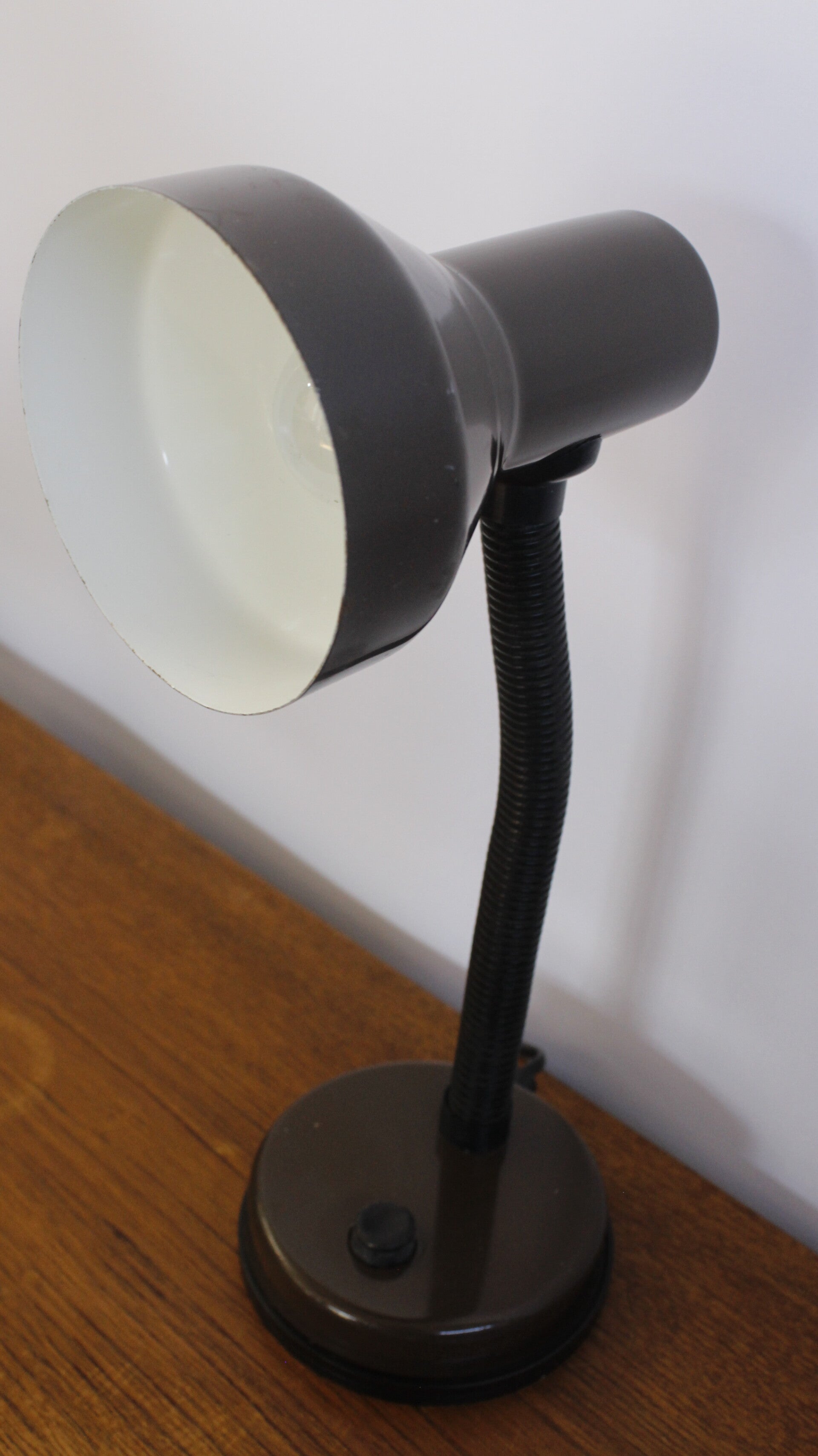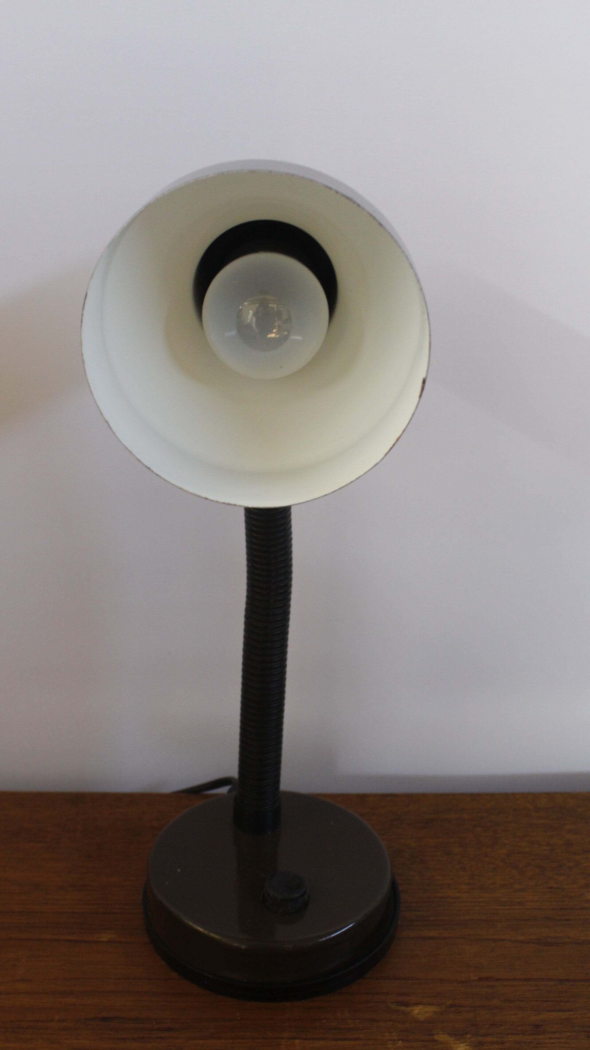 Vintage bureaulamp met een hele flexibele poot waardoor je hem alle kanten kunt uitzetten. Superhandig.
