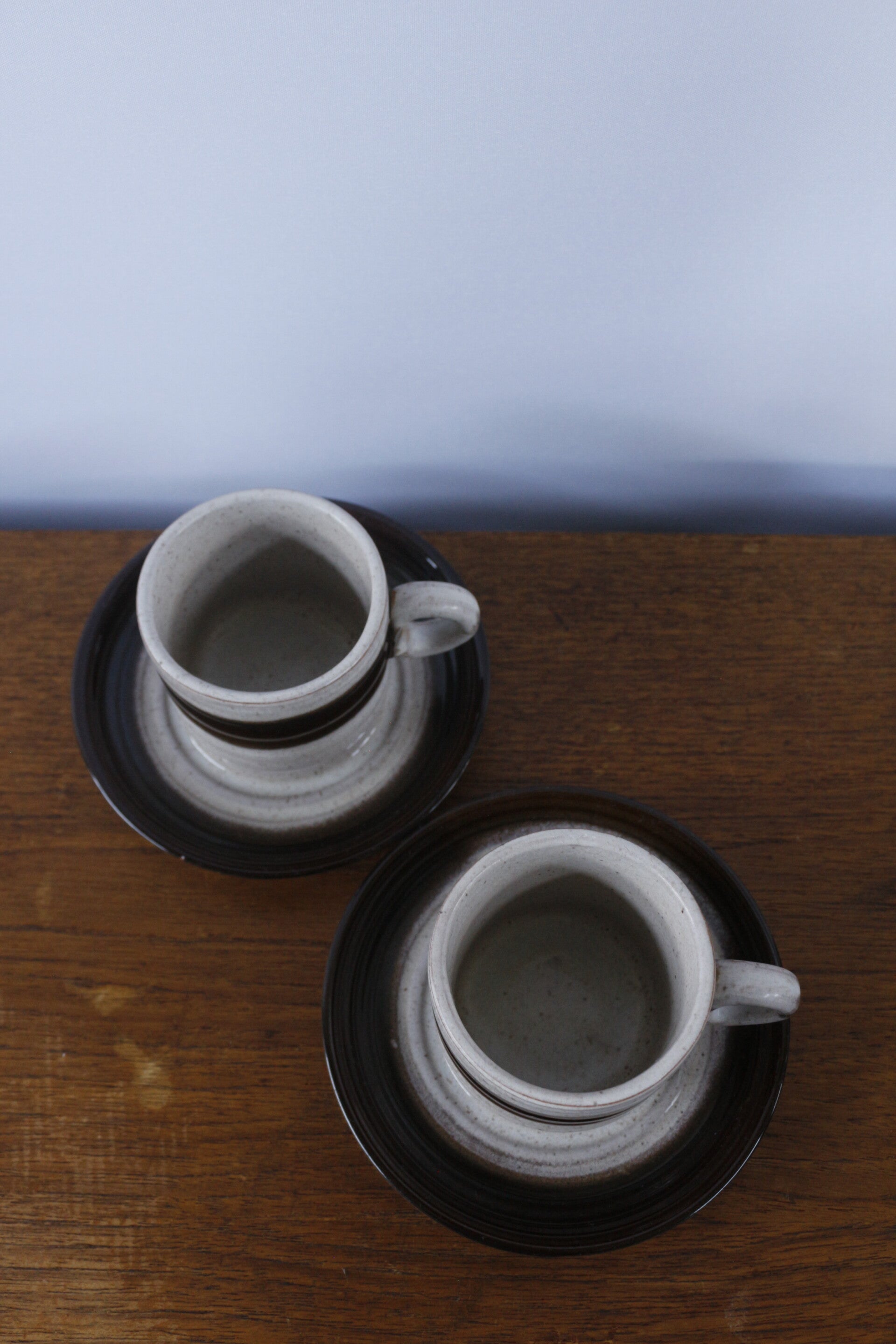 Leuke set kop & schotels in bruin en beige, echte jaren 70 kleuren.