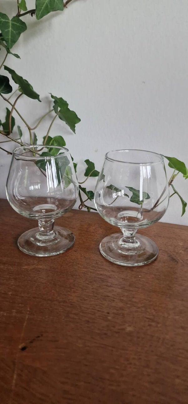 Een mooi vintage set van twee cognac glazen in een hele mooie vorm. Natuurlijk ook te gebruiken voor een andere drankjes.