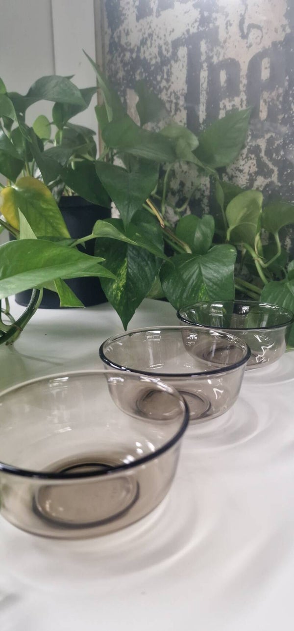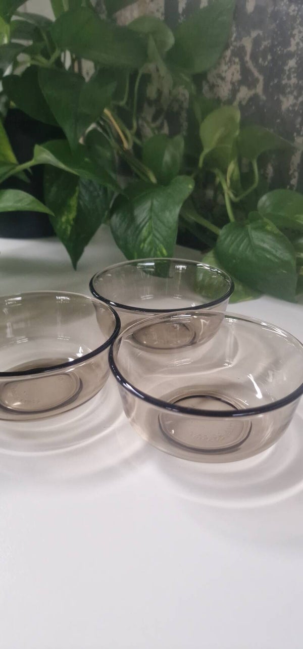 Set van 3 vintage schaaltjes van rookglas, Arcoroc France