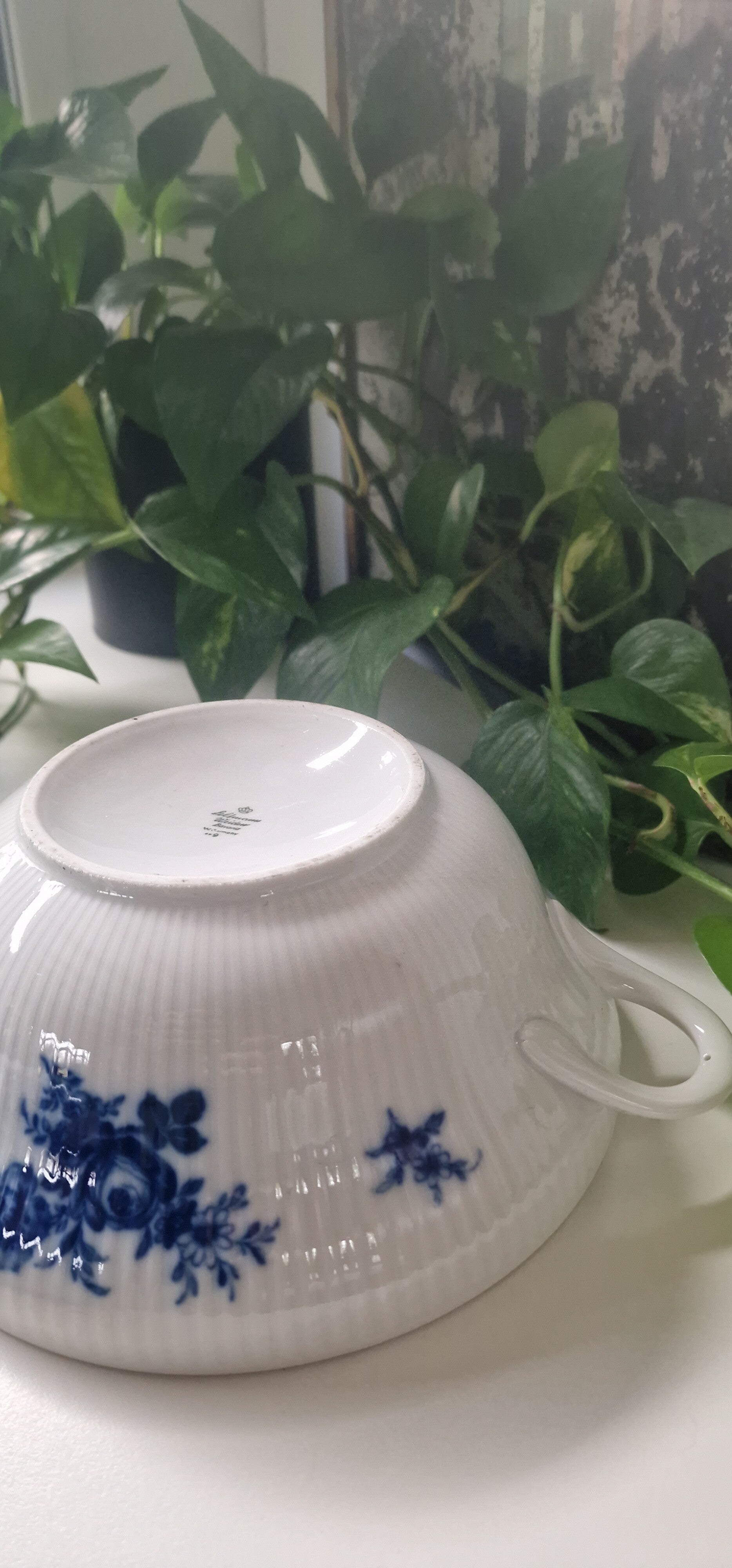 De schaal heeft een hoogte van 9 cm, met het deksel erop is hij 16 cm. De doorsnede is 22 cm.