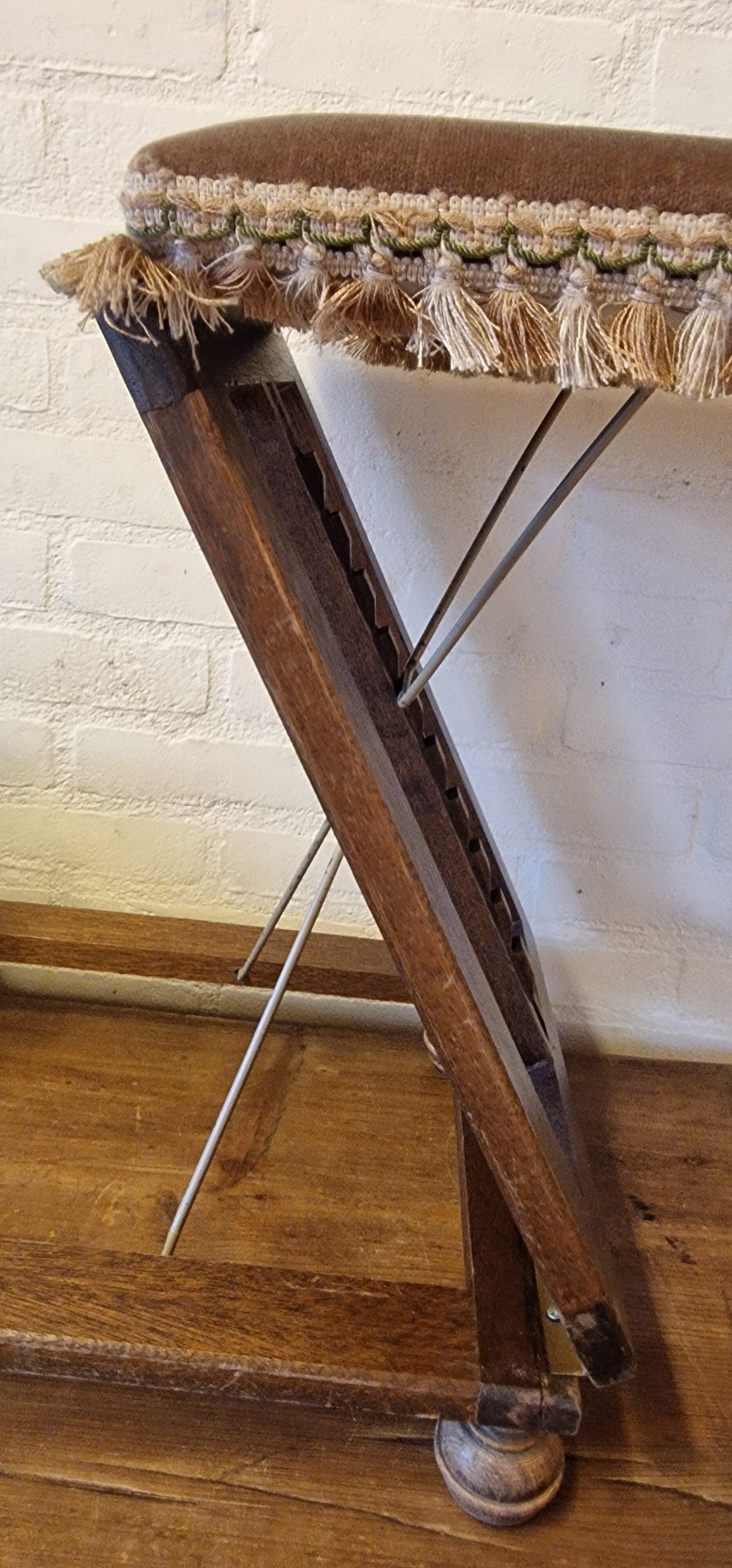 - Zo mooi, deze voetenbank is gemaakt van een houten frame die je in verschillende hoogtes kunt zetten. Het hoogste is 50 cm. Maar inklapbaar kan hij onder de stoel met zijn 14 cm hoogte.