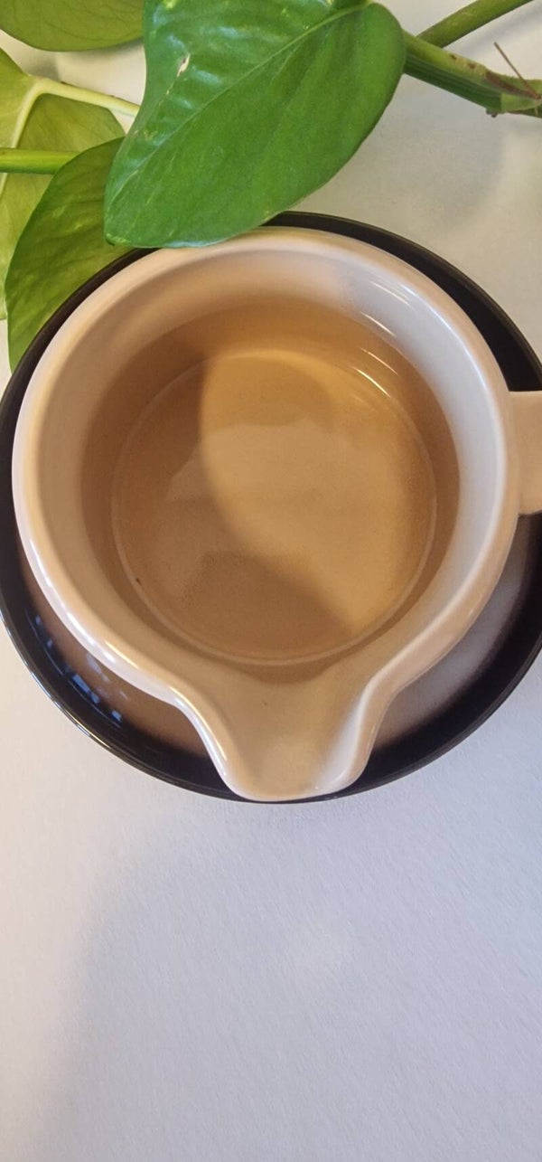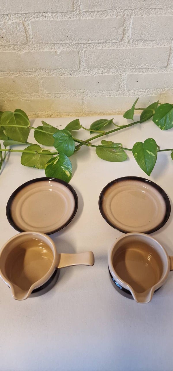 Afmetingen: bakje ∅ 10 cm , hoogte 6,5 cm / handvat 7 cm / bordje ∅ 15 cm