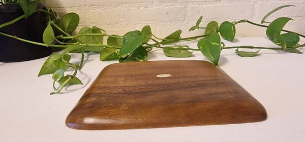 Mooi vierkant houten dienblad van Monkey Pod wood. Hij is vintage dus gebruikt, heeft klein plekje dat iets lichter is. Zie foto's.