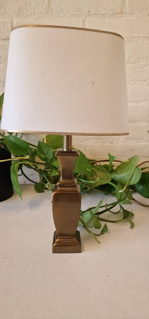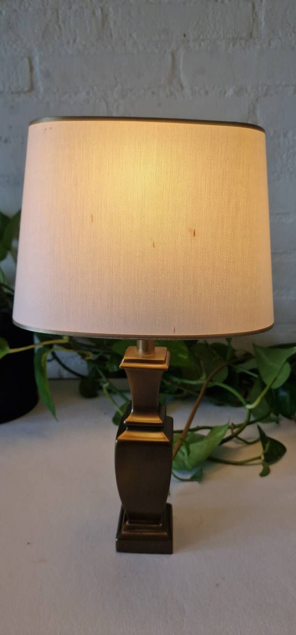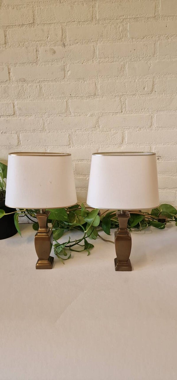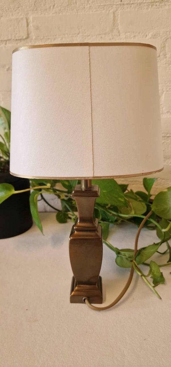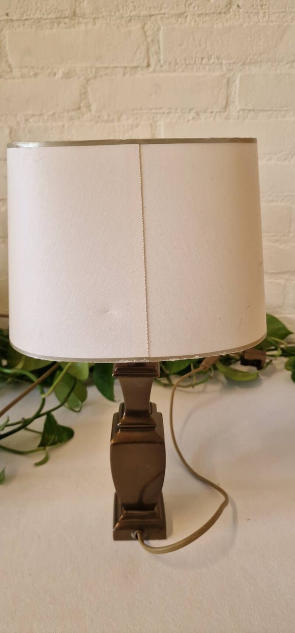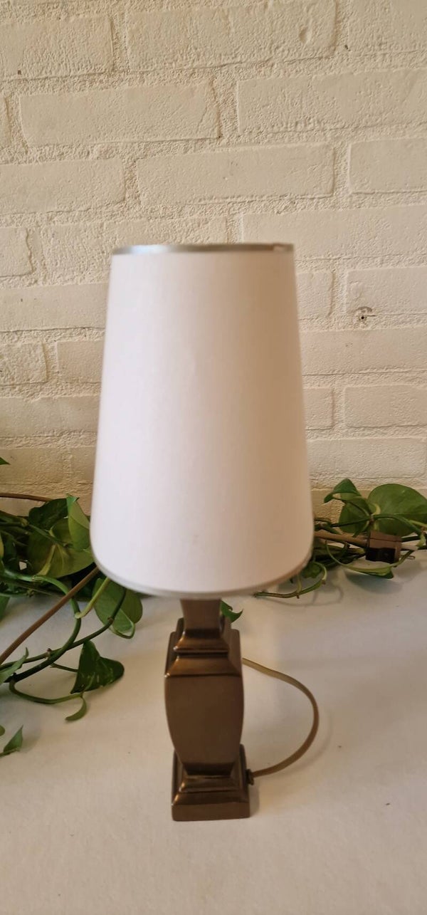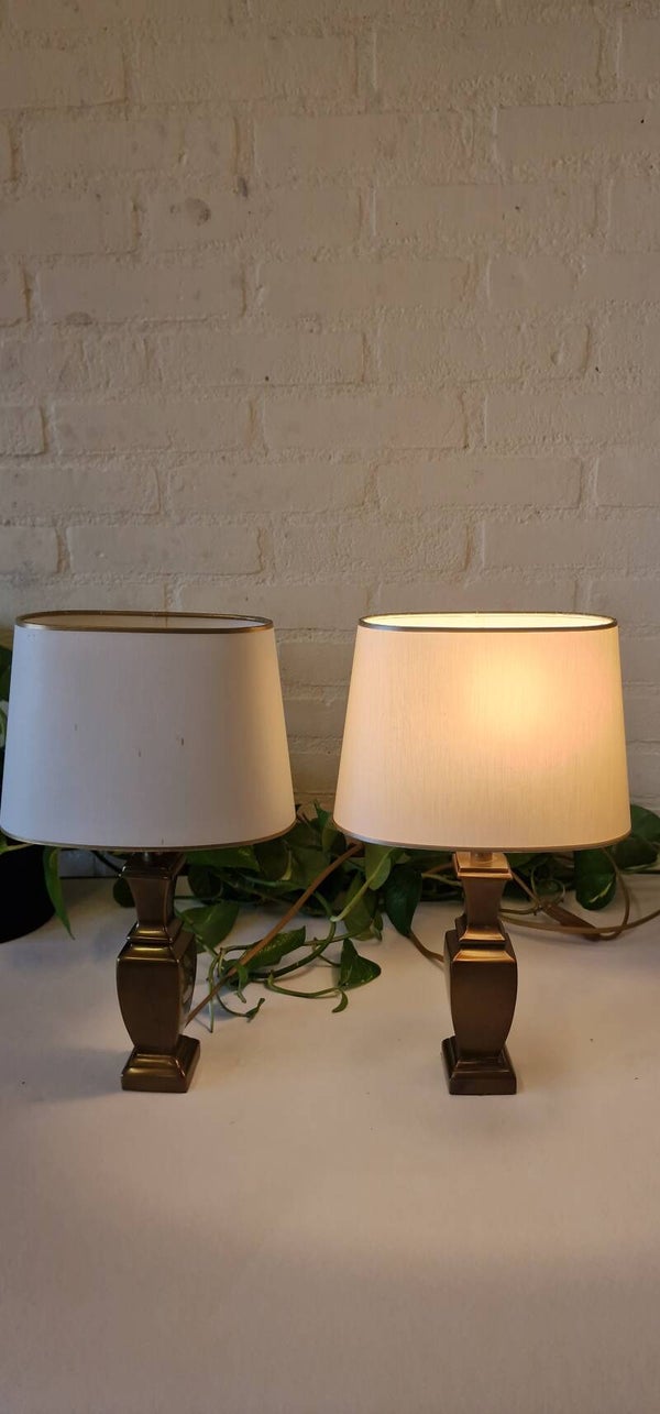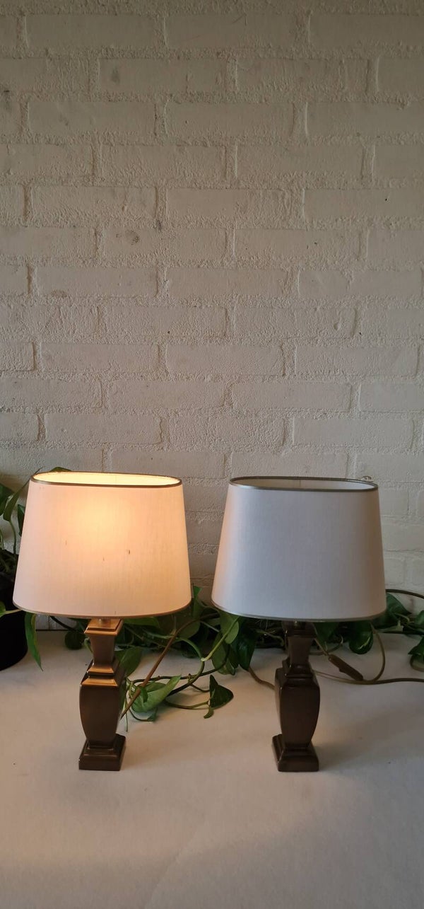 De hoogte van de lampen inclusief kap is 36 cm ( zonder 25 cm ) De kap zelf is 15 cm hoog. Nog voorzien van originele kap, de linker (zie foto's) heeft een paar vlekjes en de goudkleurige rand heeft sporen van ouderdom.
