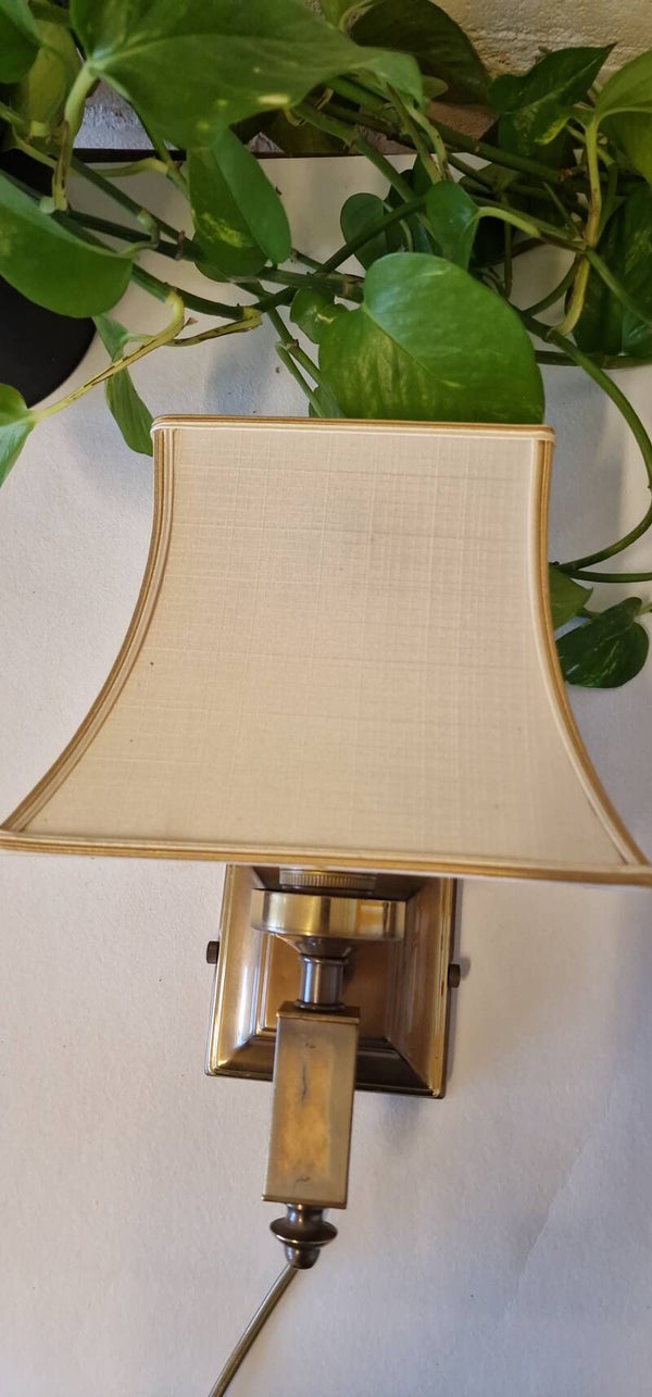 Een mooie set wandlampen van het Nederlands merk Herda uit de jaren 70. Gemaakt uit messing in een neoklassieke stijl, compleet met de originele lampenkappen.
