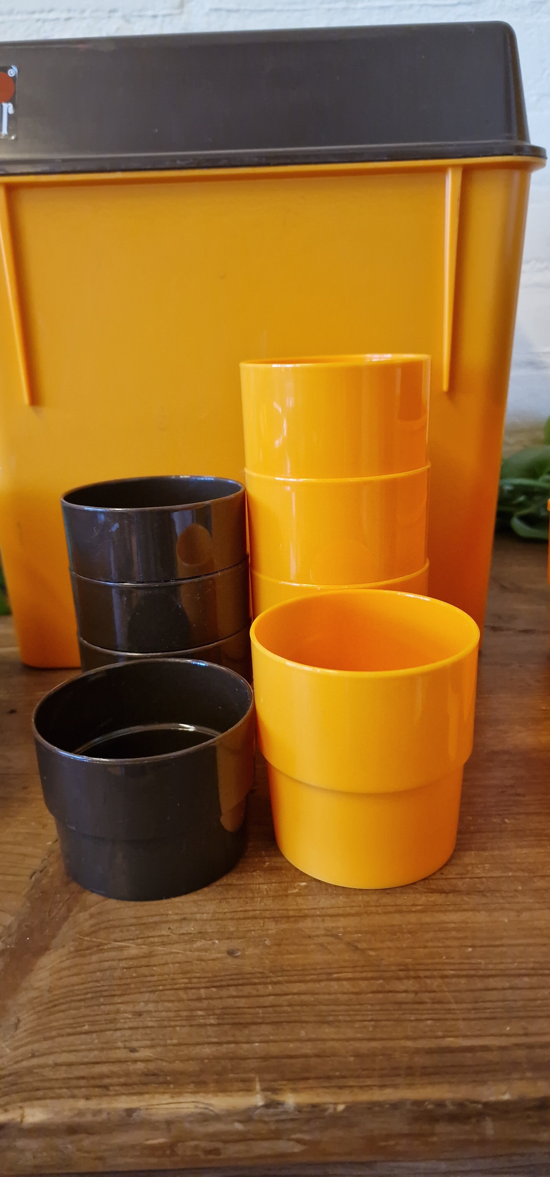 Op stap met je oldtimer busje/auto dan mag deze picknick box uit niet ontbreken. De box van hard plastic is met zijn inhoud perfect voor op de camping of tijdens een picknick. Met handvat en makkelijk af te sluiten. De kleuren geven natuurlijk het ultieme jaren 70 gevoel.