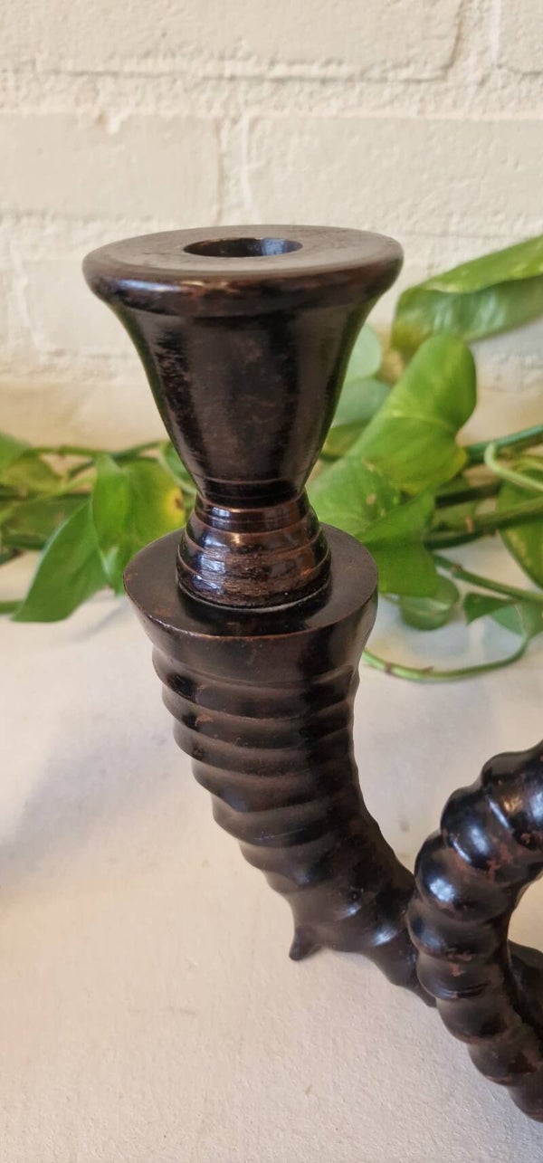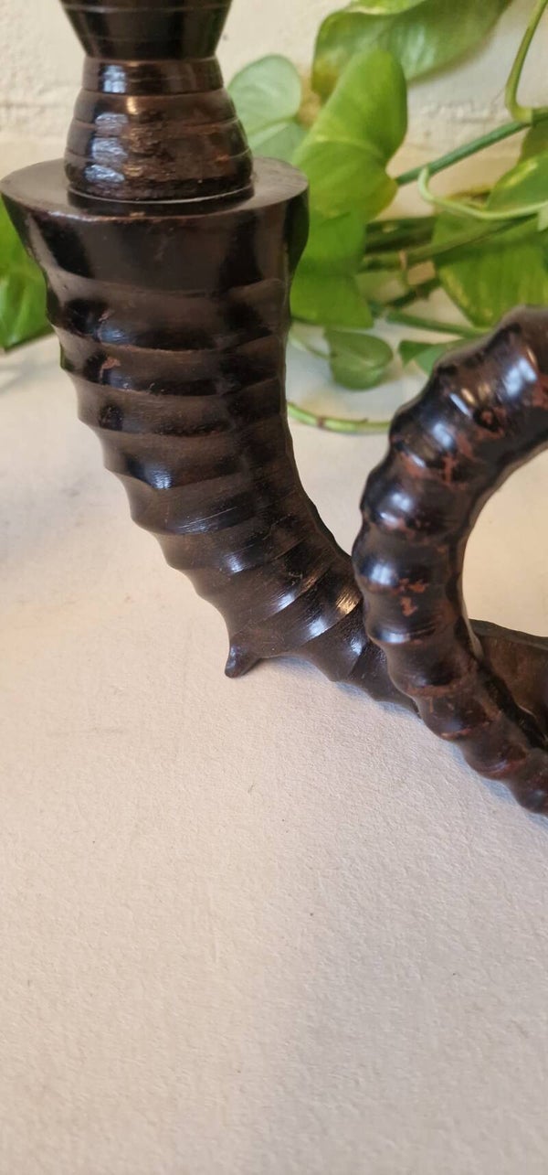Paar mooie messing ramshoorn kandelaars uit het midden van de vorige eeuw. Mooi, elegant en uniek.