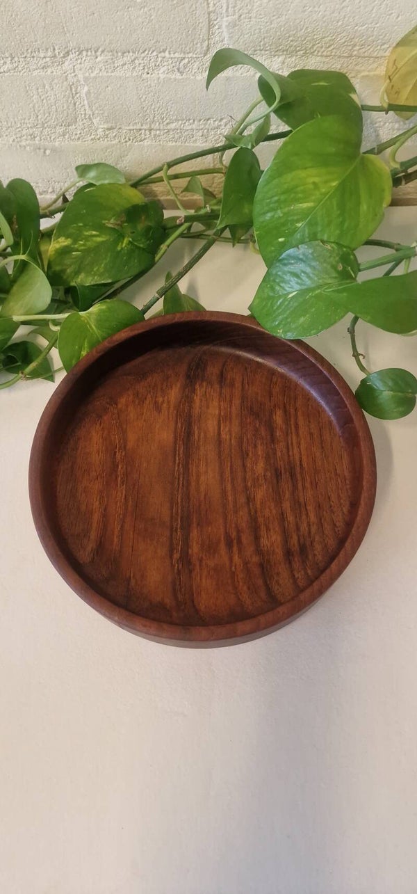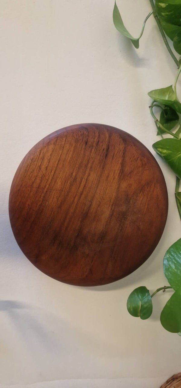 Leuke ronde vintage houten serveerschaal. Mooi en decoratief. Perfect voor in de keuken om je fruit of iets anders in te doen.
