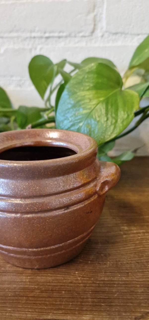 Leuk klein bloempotje met soort handvaatjes in een bruin/ goud kleur. Het potjes is aan de onderzijde gemerkt: G571/10