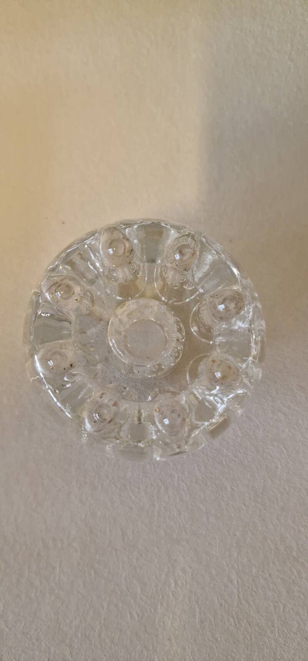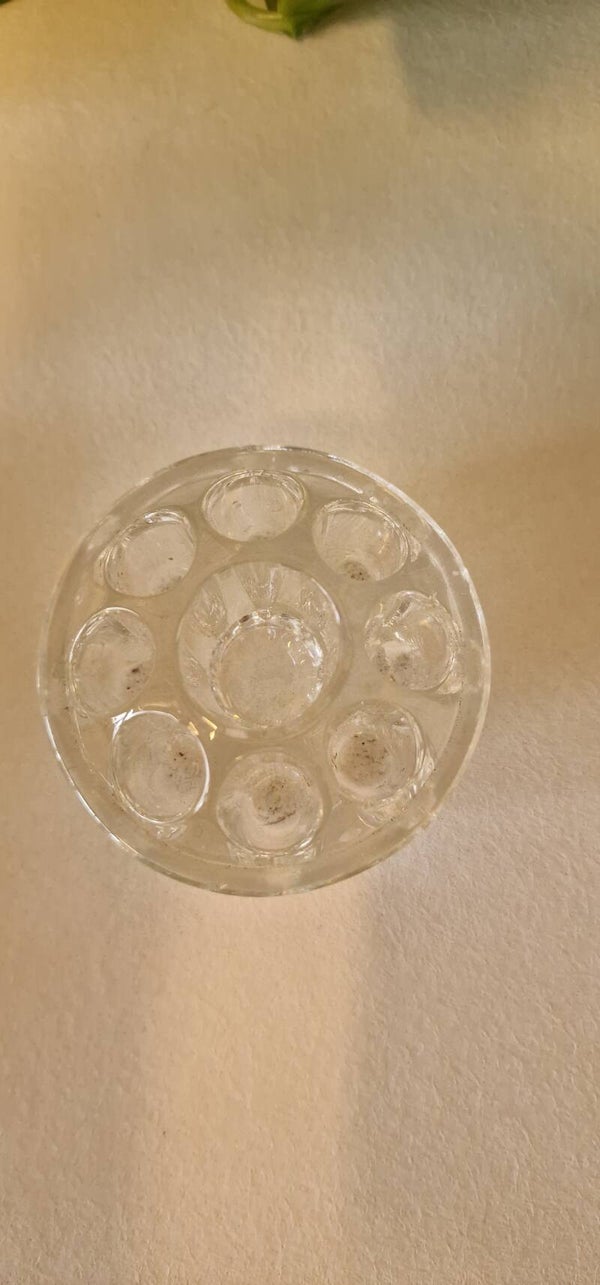 De steker is 5 cm hoog en heeft een doorsnede van 7.5 cm. Heeft beschadigingen, maar niet storend en nog goed te gebruiken.