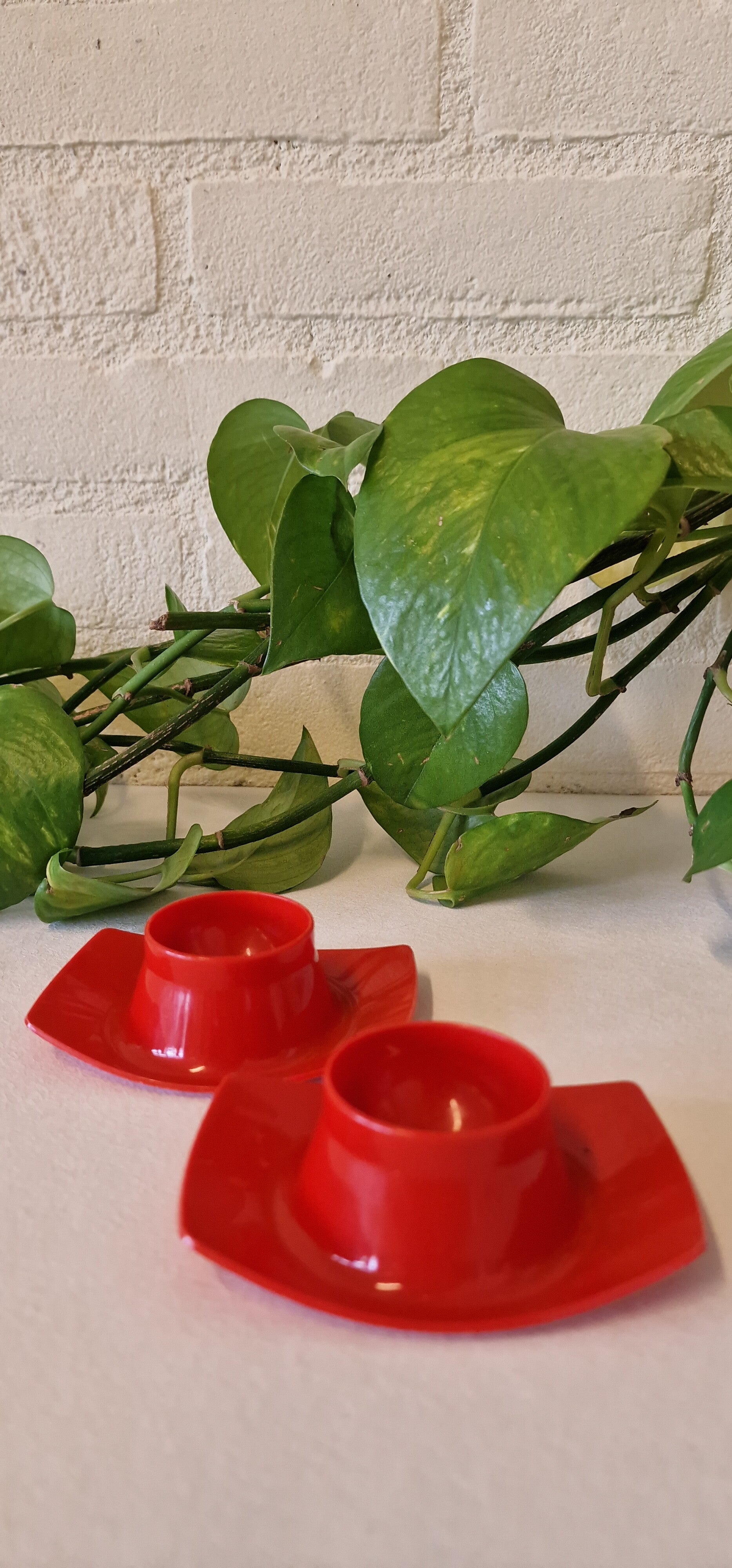 Een set van twee leuke kunststof eierdopjes van het merk Gerda uit de jaren 70.