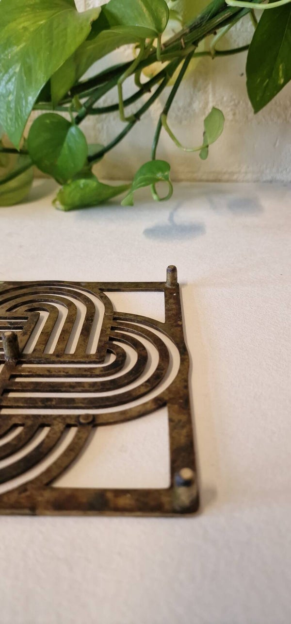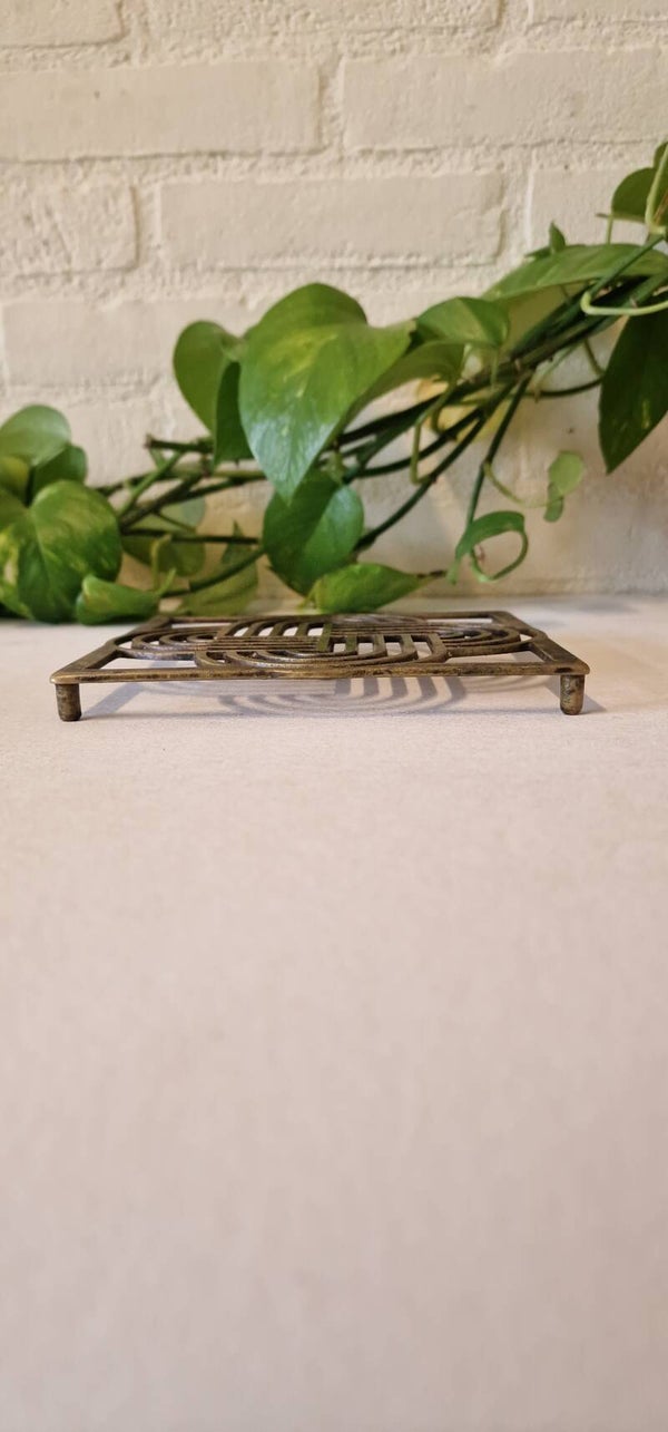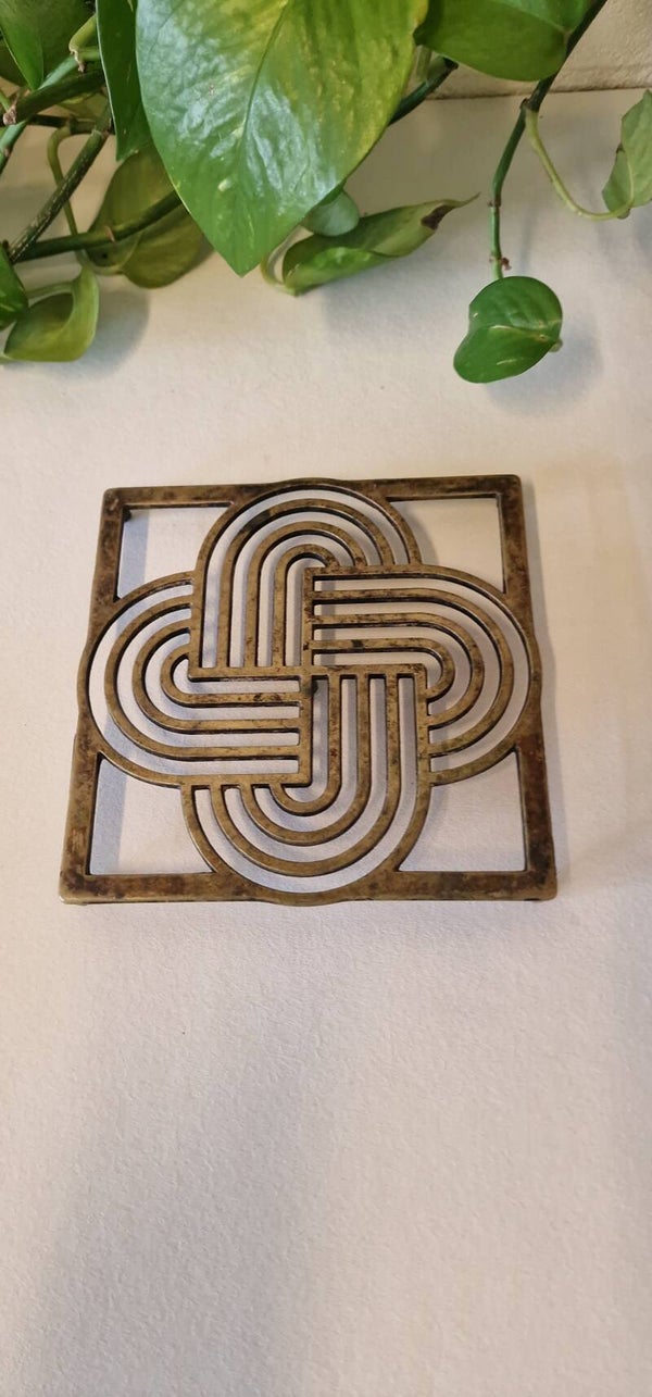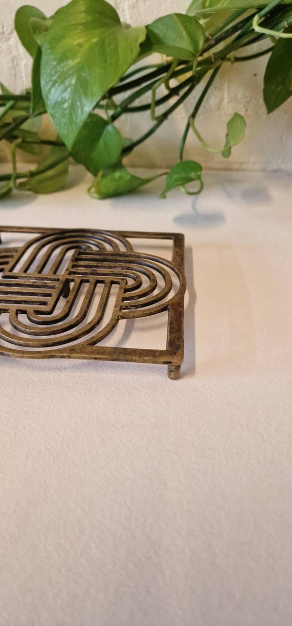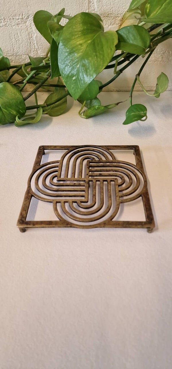 Mooie messing onderzetter in Art Deco stijl, bijna te mooi om iets op te zetten.