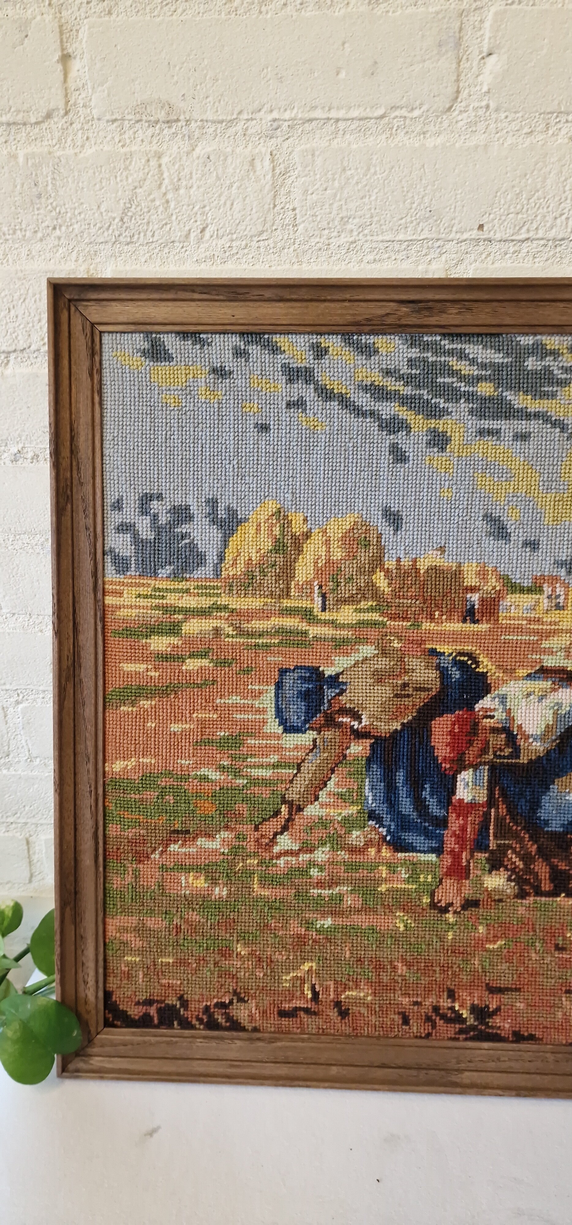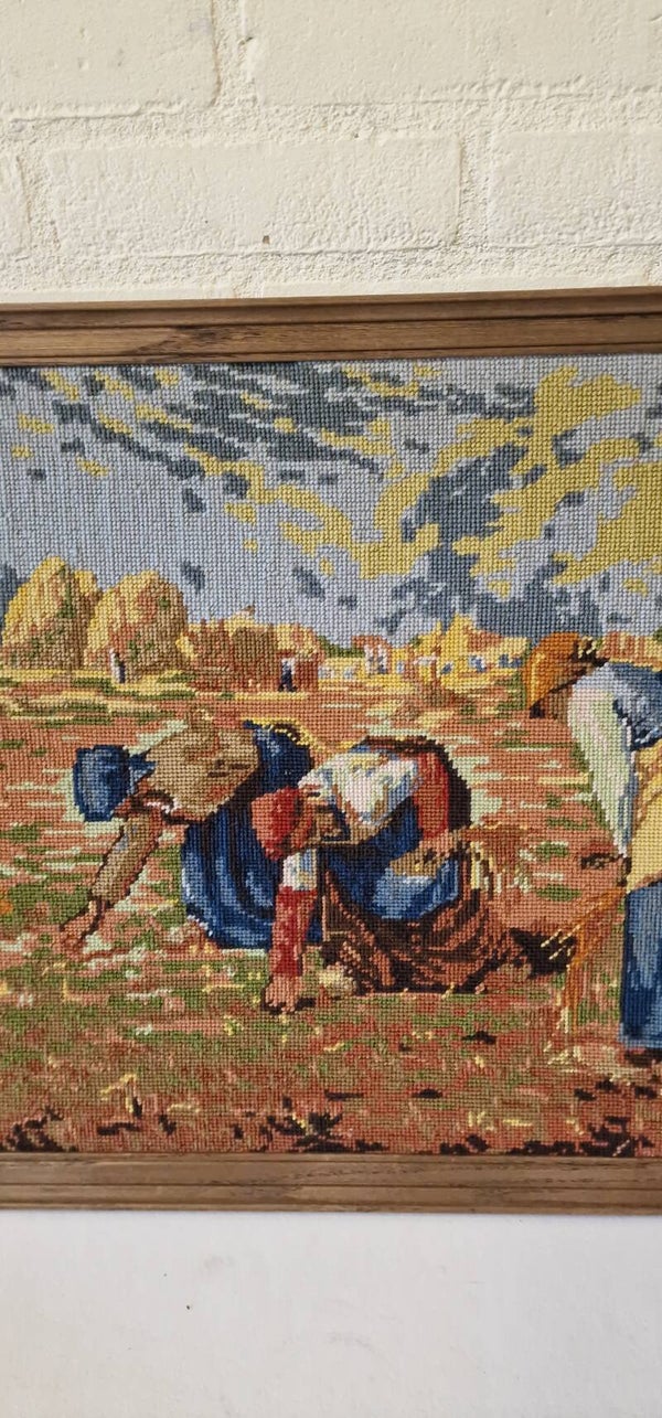 Schilderij met een afbeelding van het schilderij "Arenleessters" van de Fanse schilder Jean-François Millet uit 1857. Het is een realistische voorstelling van 3 arme boerenvrouwen.
