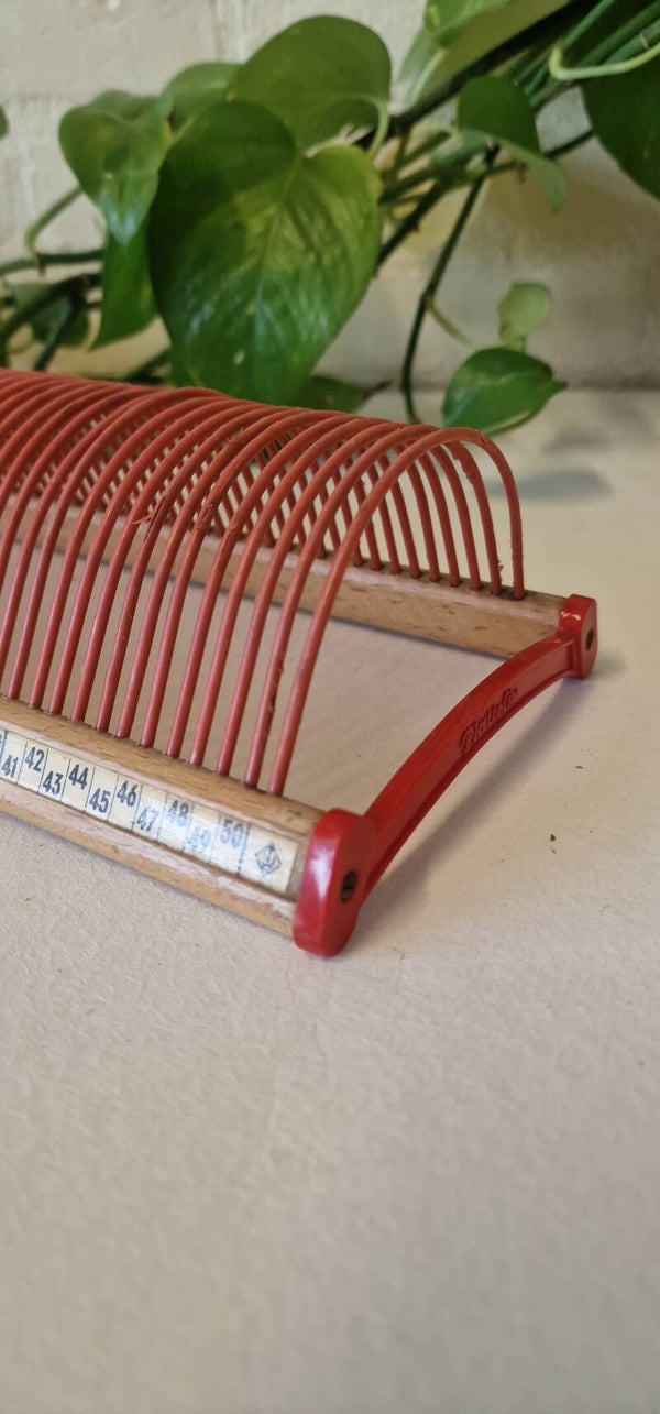 Vintage Plattofix rekje voor het bewaren van vinyl singles of Lp's. Het rekje komt uit de jaren 60 en heeft een houten frame. Er is plek voor 50 platen/ singles.