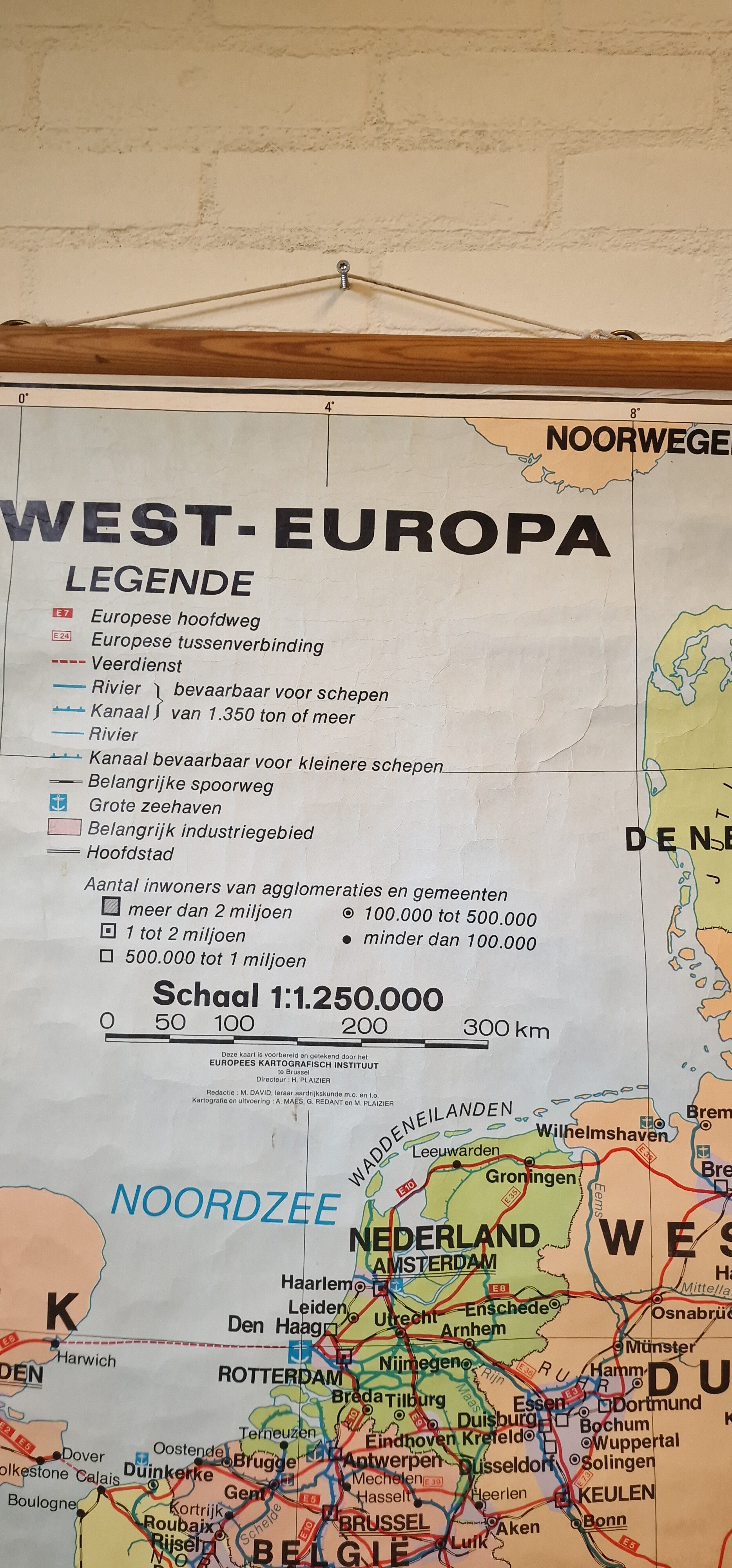 Prachtige vintage schoolkaart uit 1972 met de landen van West-Europa, gemaakt door het Europees Kartografisch Instituut Cremers te Brussel op een schaal van 1:1.250.000.