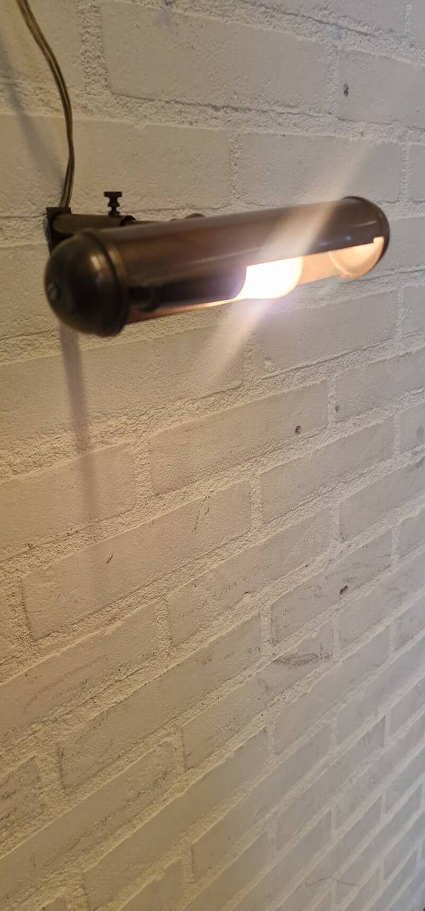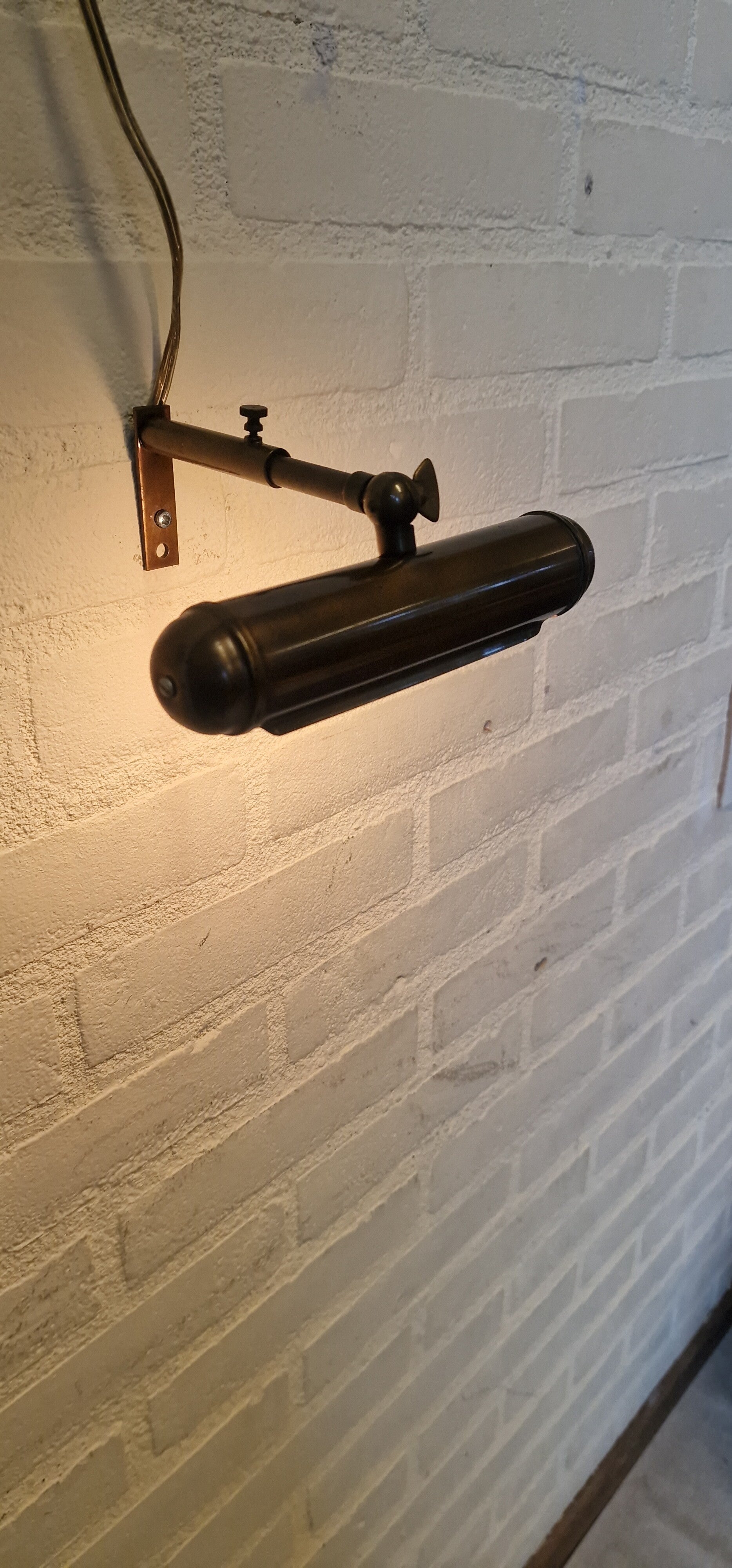 Klein messing schilderij / piano lampje. Het pootje is evenals het kapje verstelbaar.