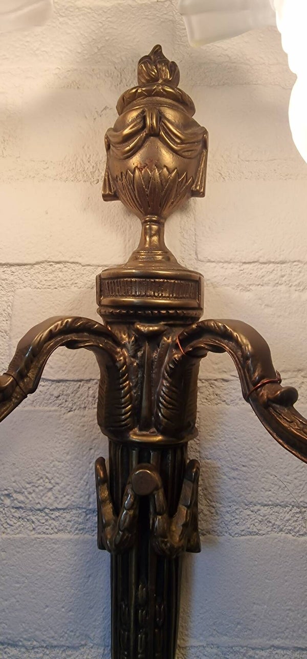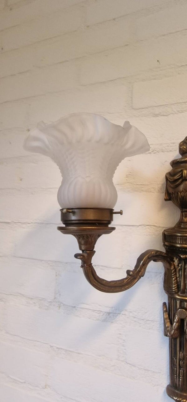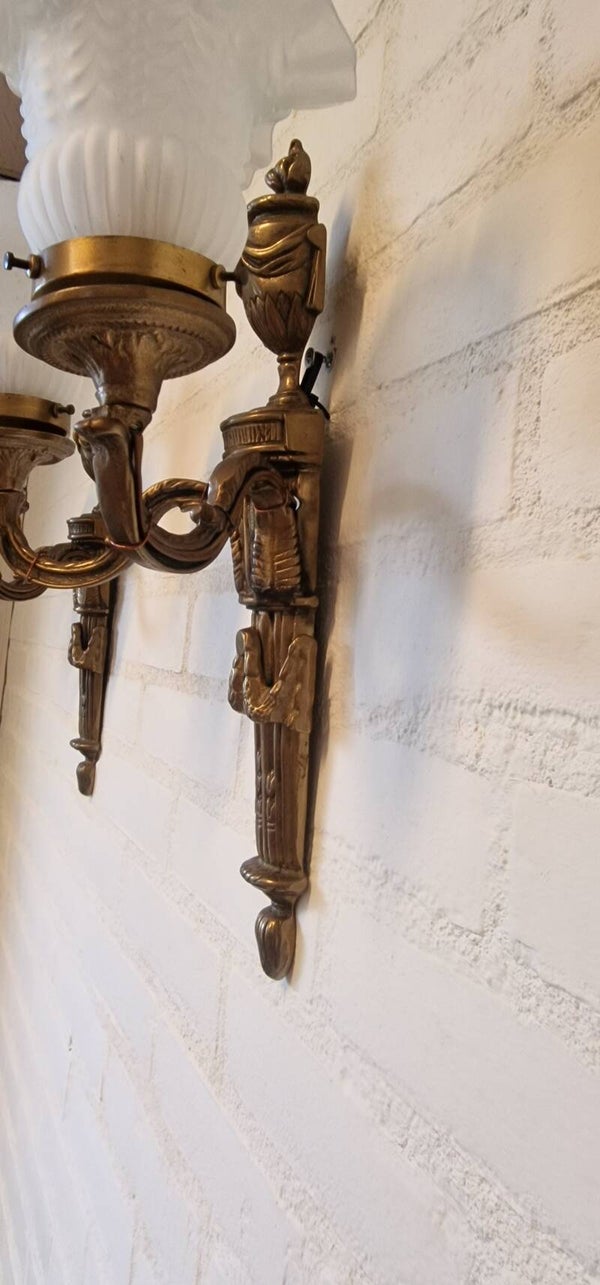 Set van 2 Franse messing wandlampen - tweearmig - glazen kapjes