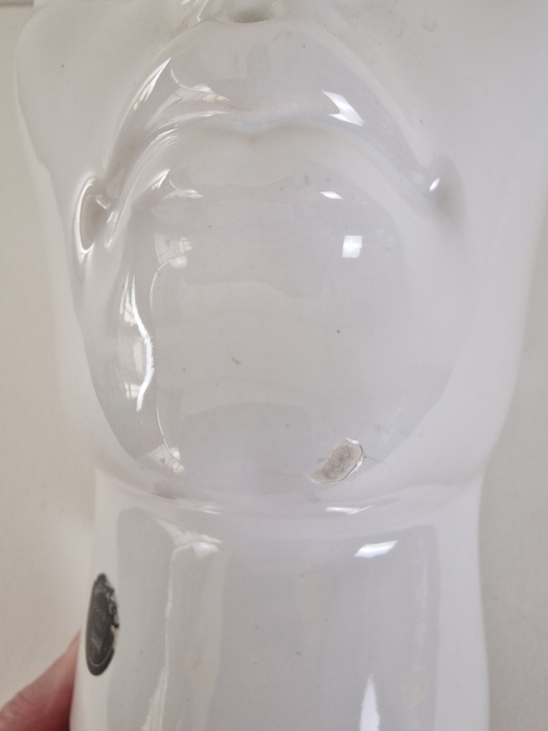 Conditie: In goede vintage staat, kleine beschadiging onder aan kin. (zie foto's)