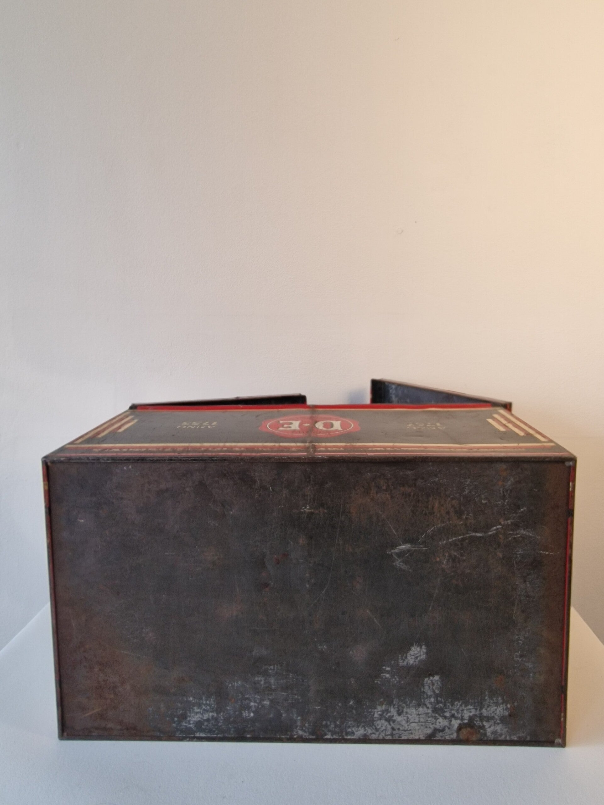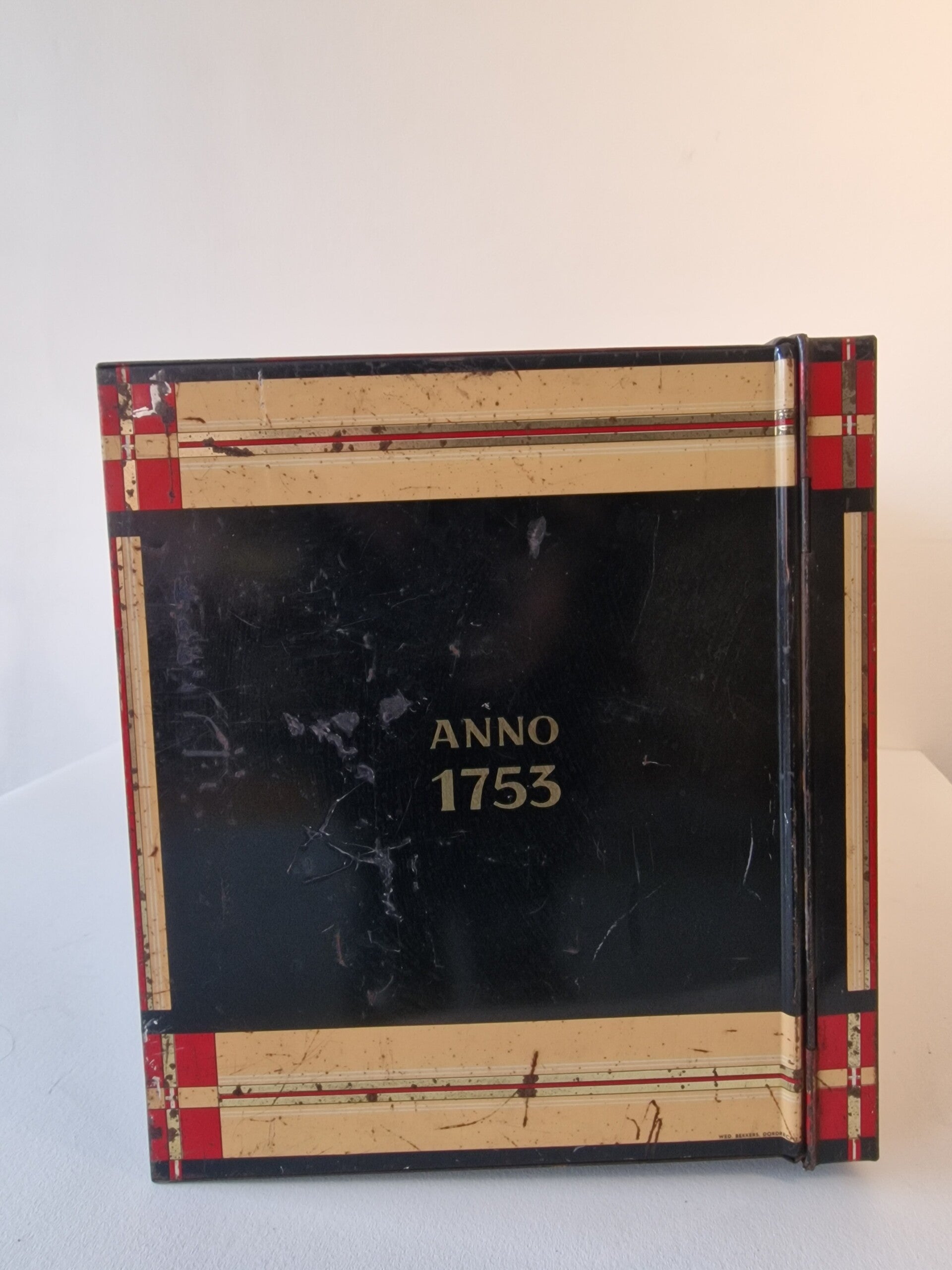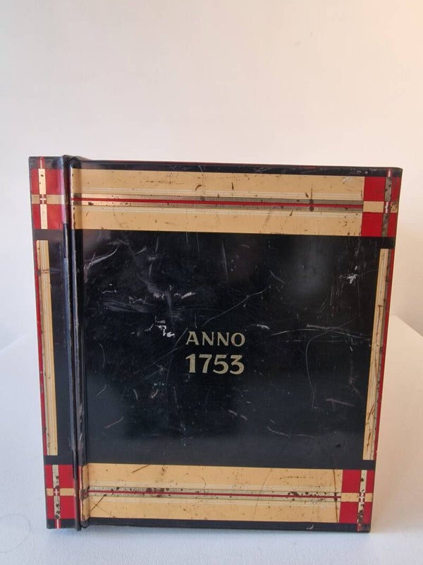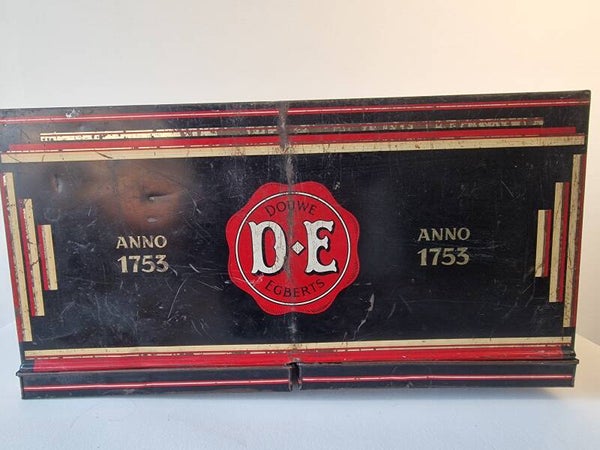 Dit blik heeft een prachtig, geleefd patina. Het iconische rood-zwarte Art Deco design met de gouden bies komt door de verwering extra krachtig naar voren.