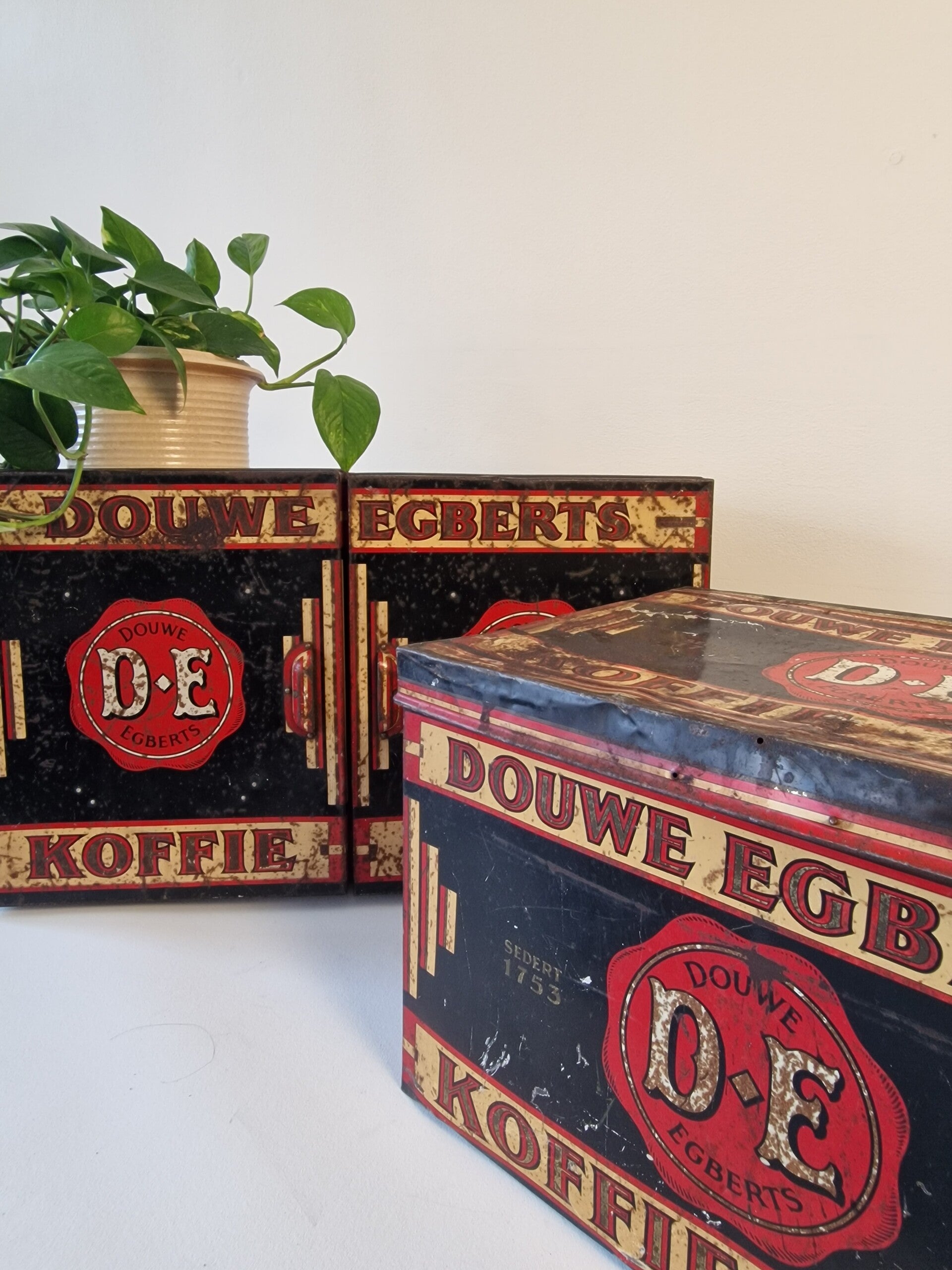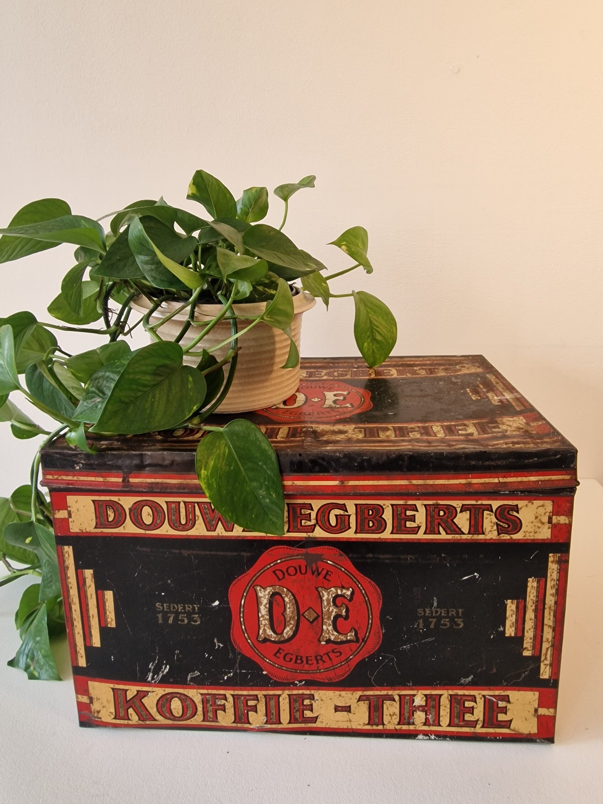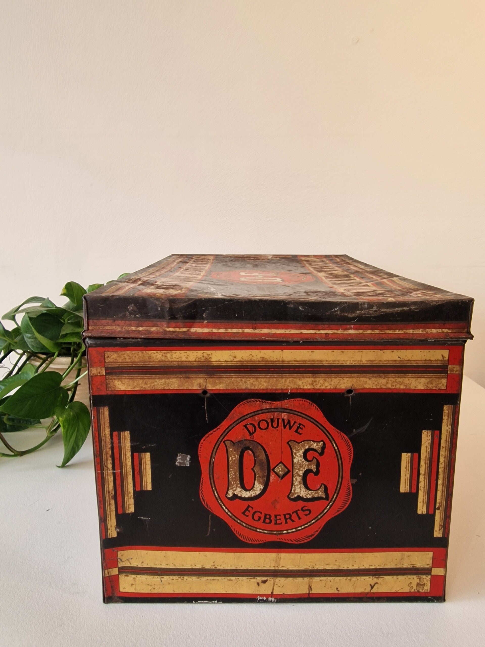 Industrieel Vintage Douwe Egberts Voorraadblik - Karaktervol Patina - Jaren '50/'60