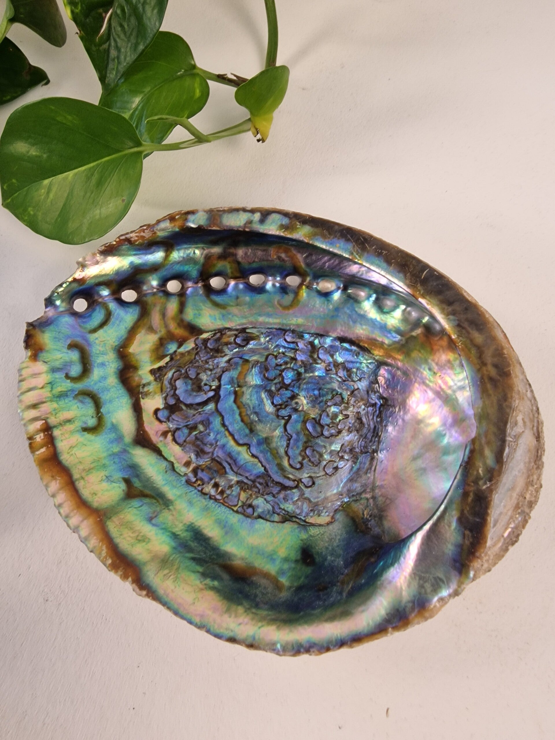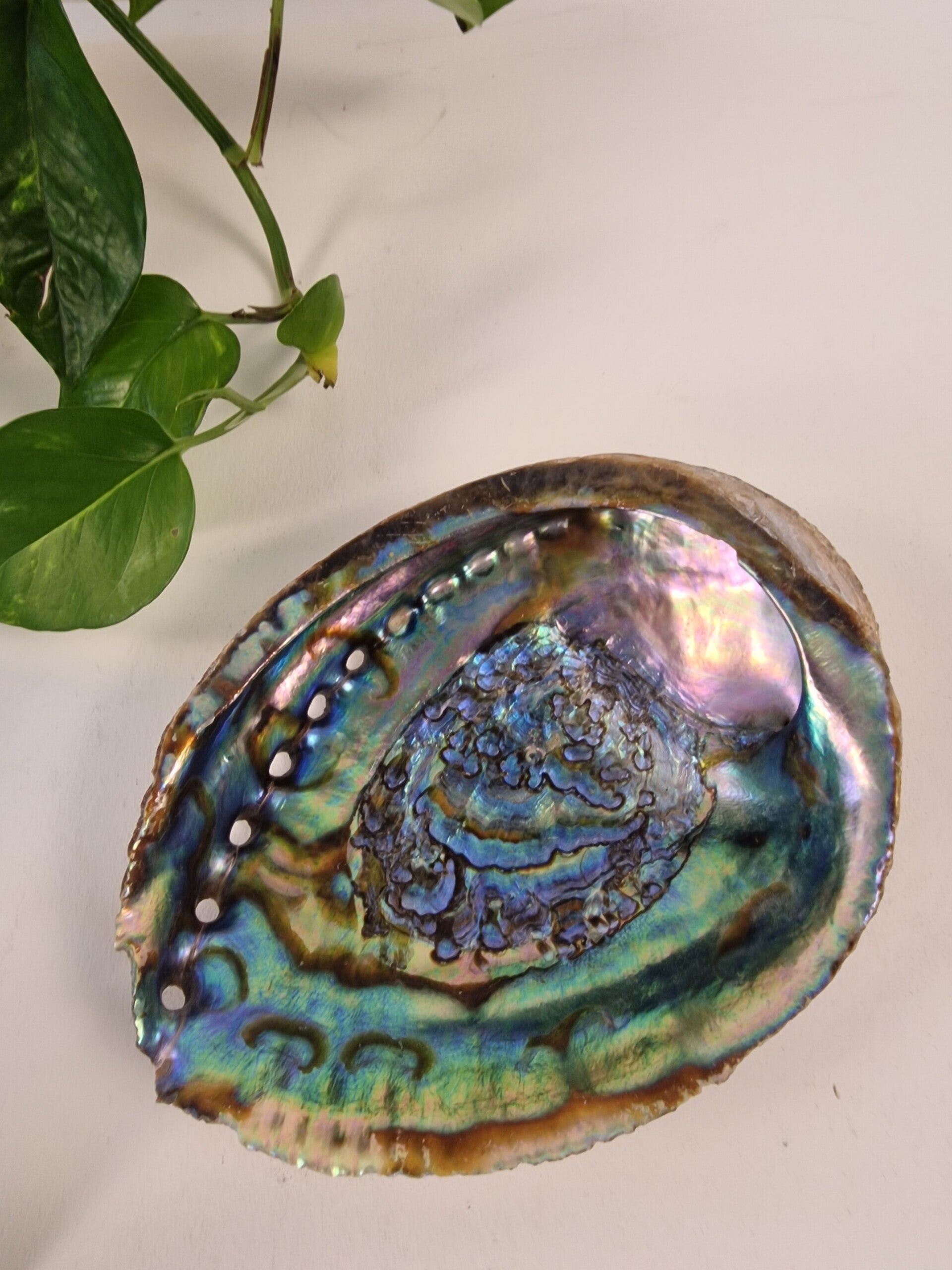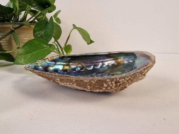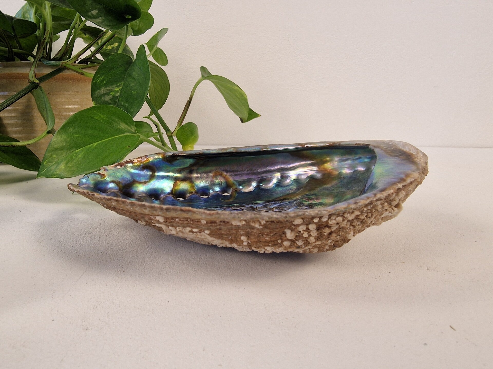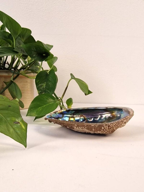 Deze natuurlijke Abalone schelp (ook bekend als Paua schelp) is een uniek decoratiestuk met een schitterende parelmoeren binnenkant. De kleuren variëren van diepzee blauw en groen tot zachtroze en zilver, waardoor geen enkele schelp hetzelfde is.